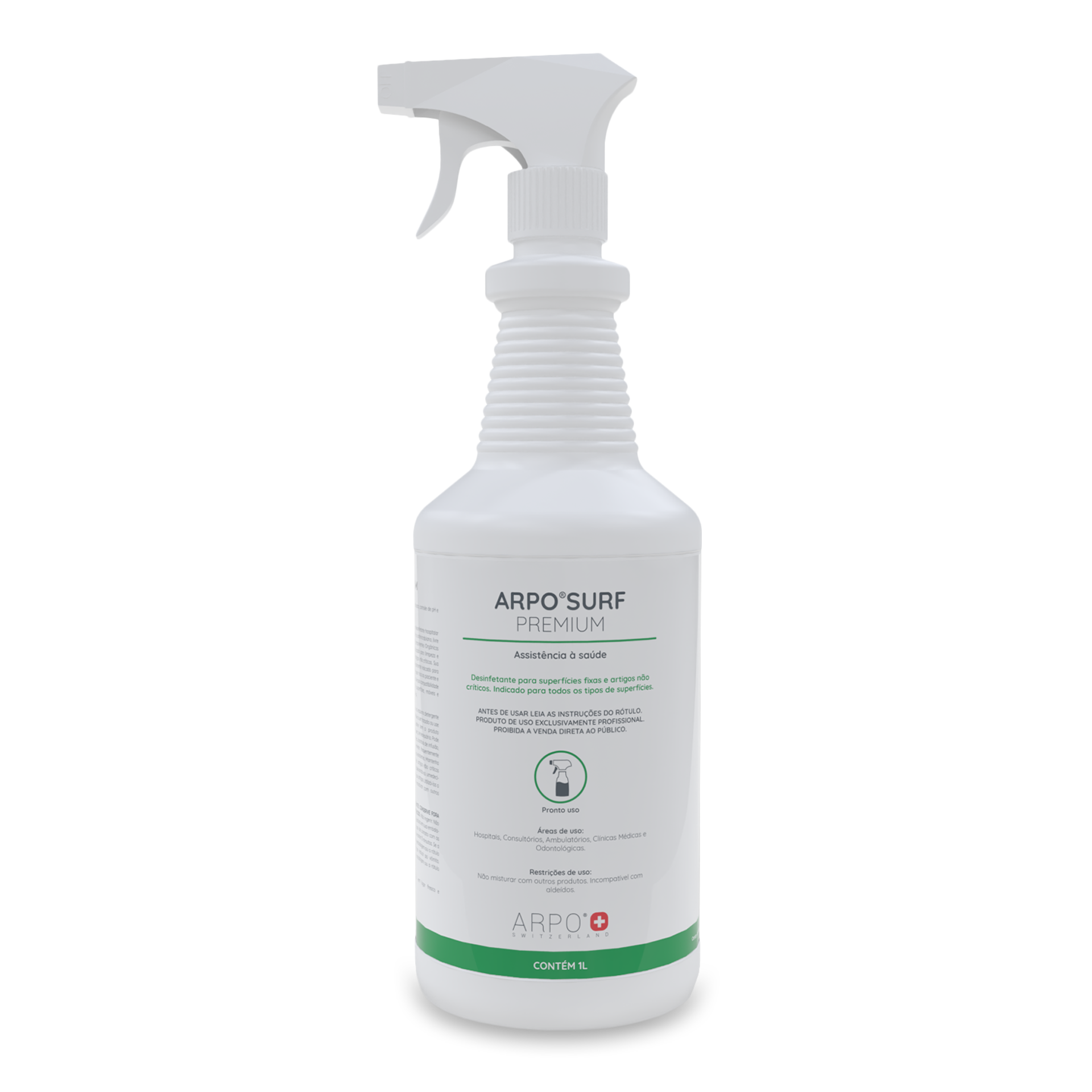 ARPO®️SURF PREMIUM é um desinfetante direcionado para assistência à saúde, pronto uso, com tecnologia TRIAMINA de última geração e amplo espectro antimicrobiano, para limpeza e desinfecção simultânea de superfícies fixas e artigos não críticos. Produto livre de álcool, livre de cloro, livre de quaternários de amônio e Componentes Orgânicos Voláteis (VOCs).